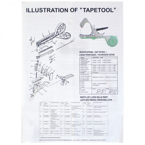 Сам тапенер (степлер для подвязки растений) изготовлен из нержавеющей стали и ABS-пластика.