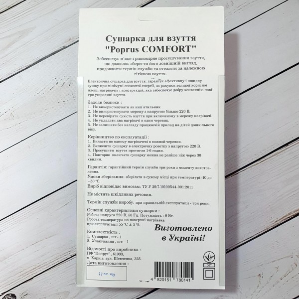 Сушилка для обуви с защитой от короткого замыкания, перегрева, повышения напряжения Poprus Comfort (16)
