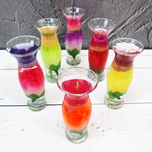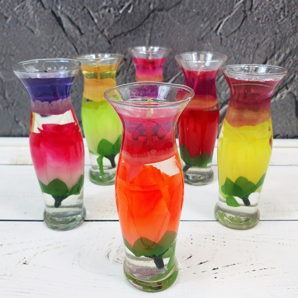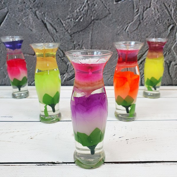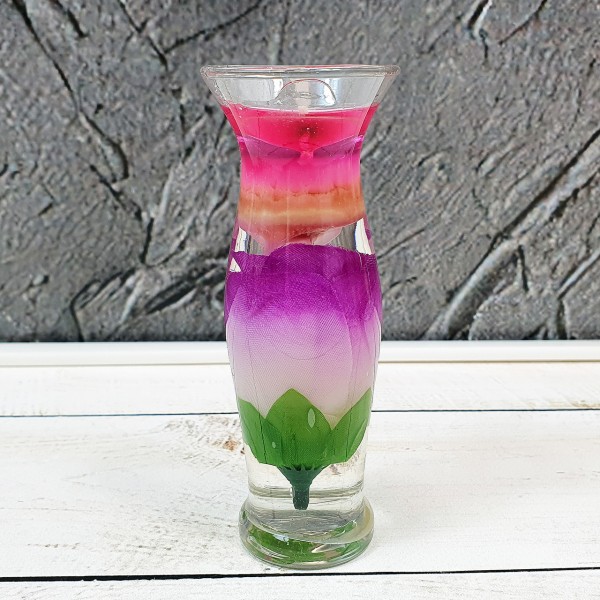 Свеча гелевая в изящной вазочке с розами Сиреневая